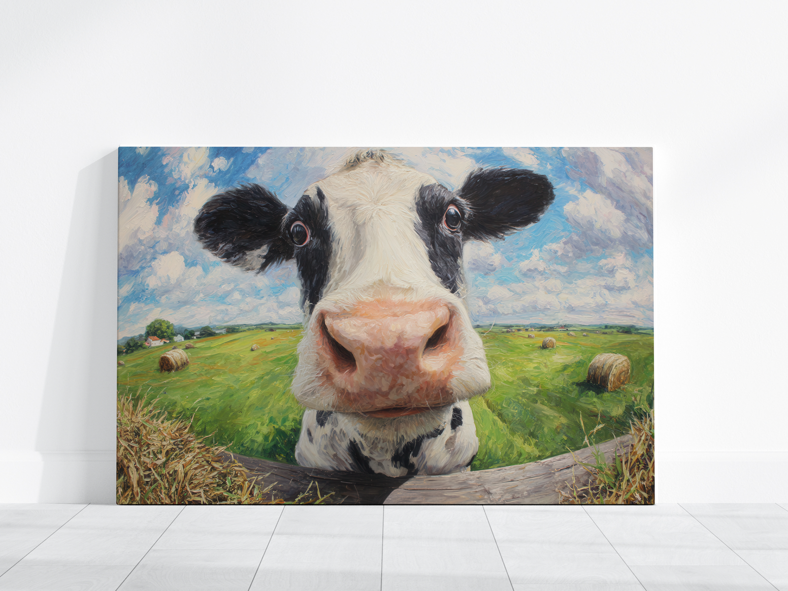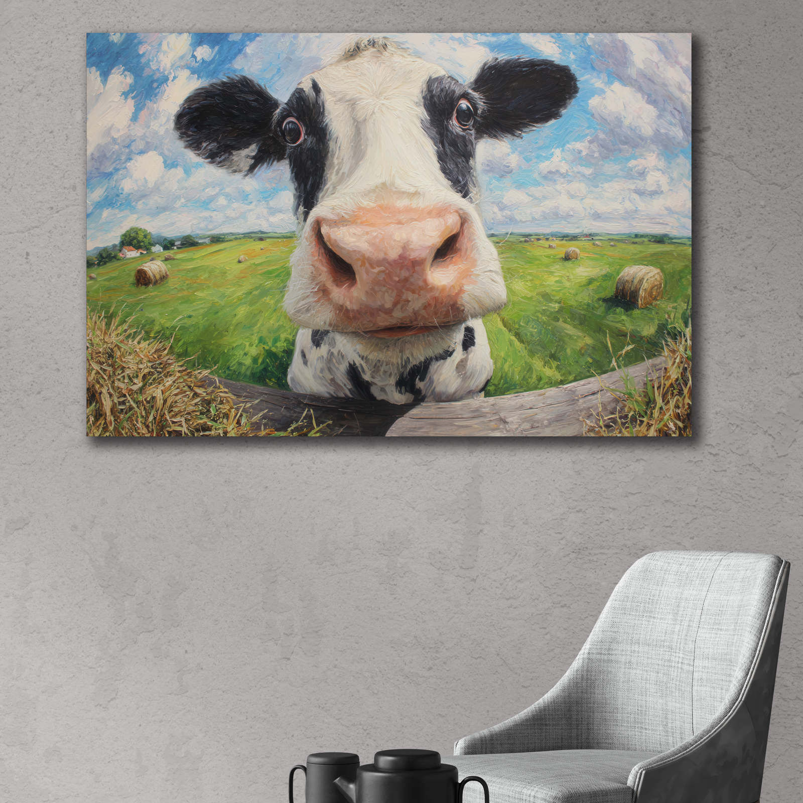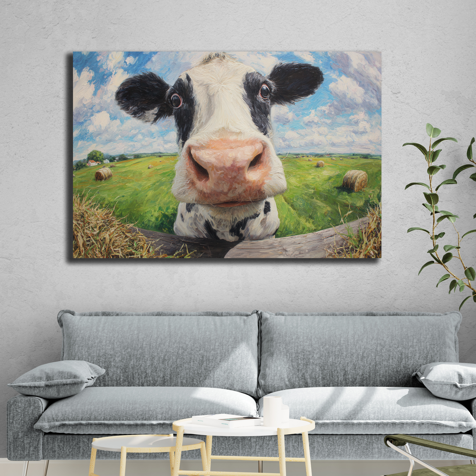 Funny Cow Wall Art, Playful Farmhouse Canvas, Animal Painting, Rustic Kitchen Living Room Decor, Cute Cow Portrait Poster Country Homes
