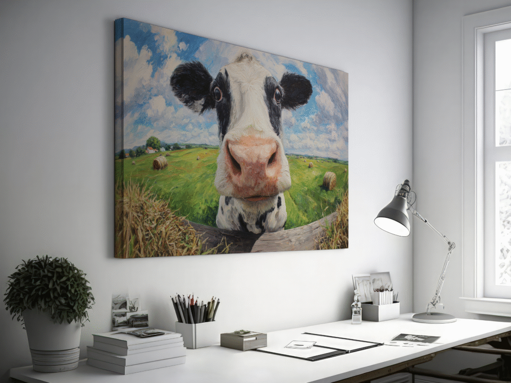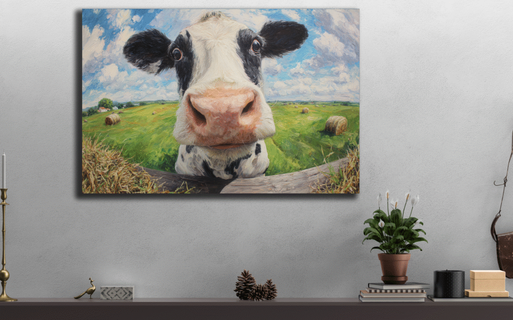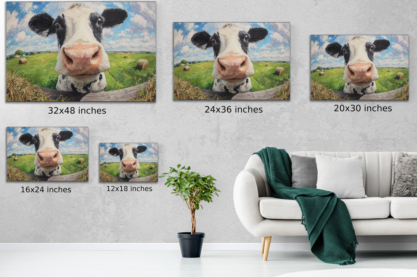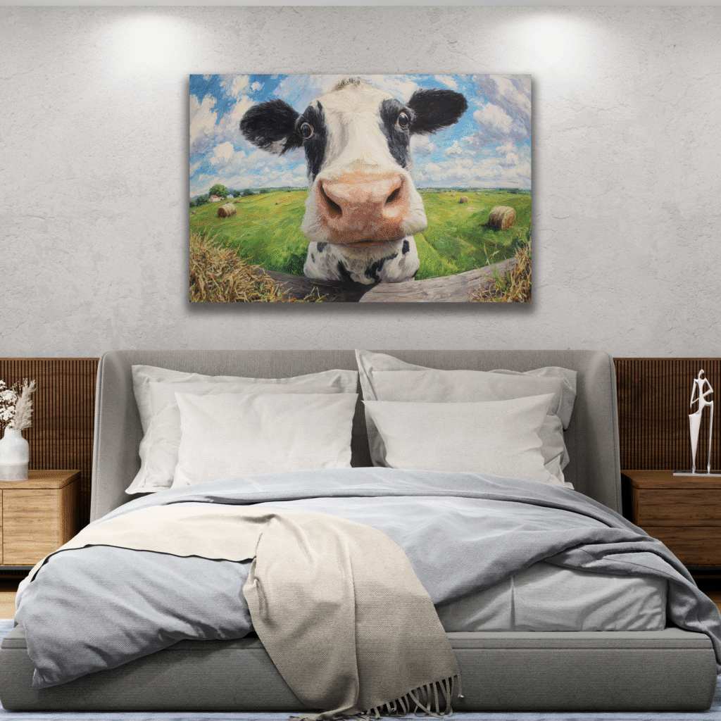 Funny Cow Wall Art, Playful Farmhouse Canvas, Animal Painting, Rustic Kitchen Living Room Decor, Cute Cow Portrait Poster Country Homes
