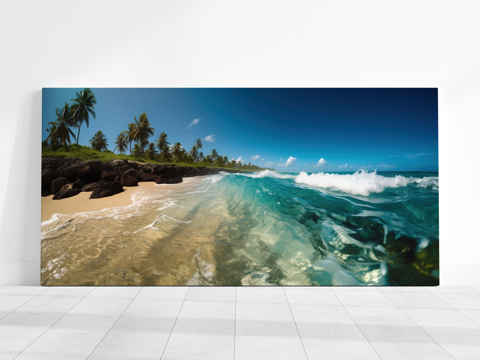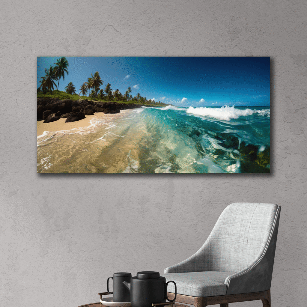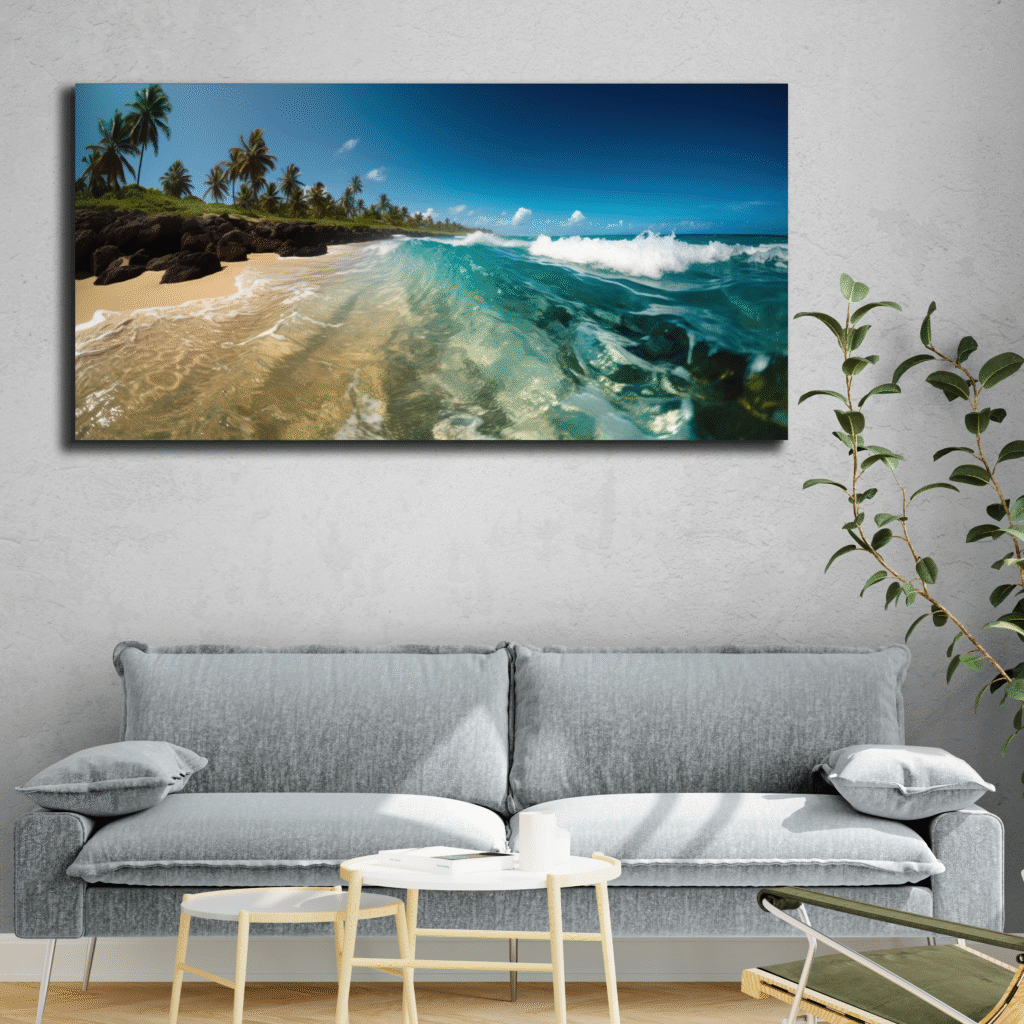Beach Waves Photography Print, Ocean Wall Art with Palm Trees, Tropical Coastal Poster, Coastal Serene Seascape Art for Home or Office Decor