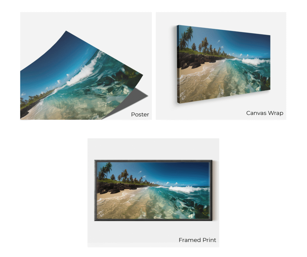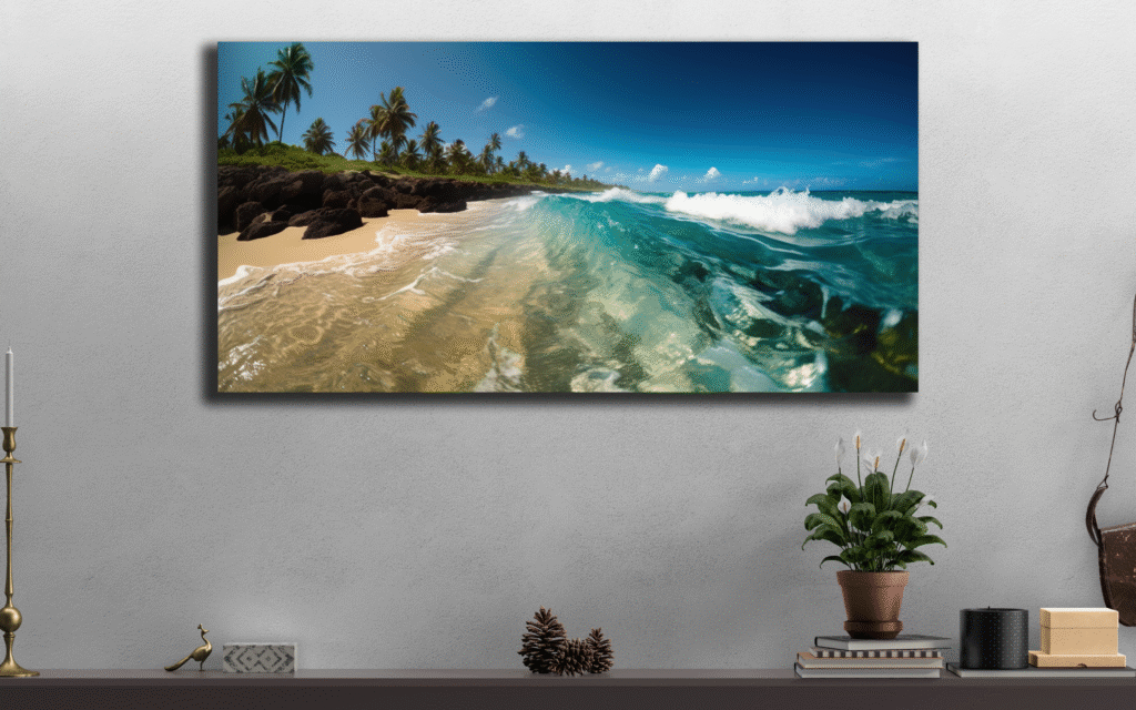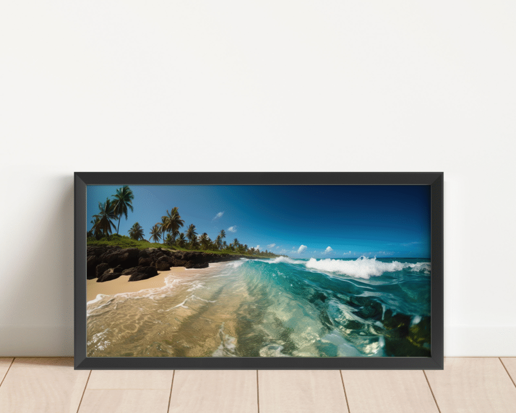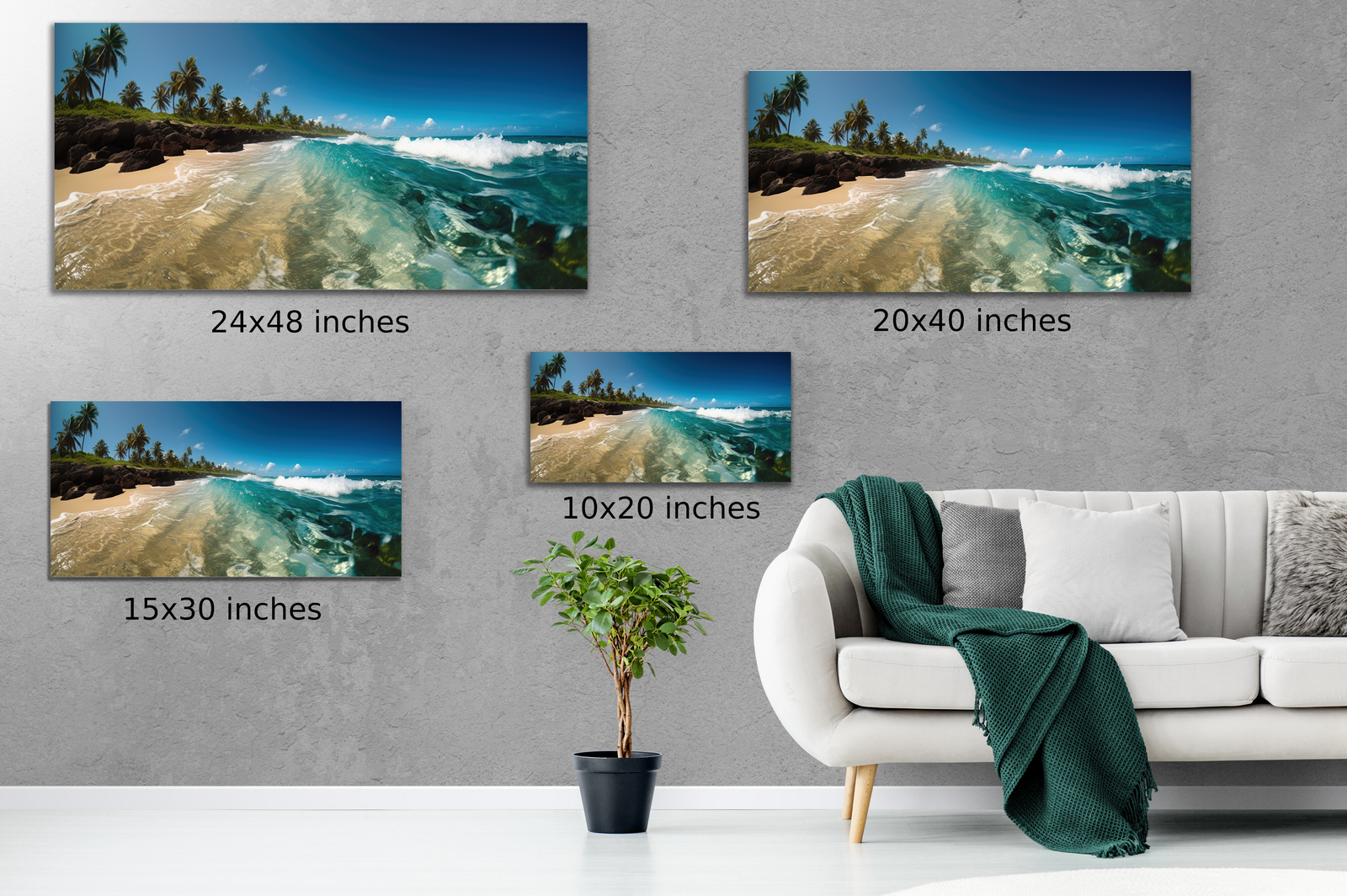 Beach Waves Photography Print, Ocean Wall Art with Palm Trees, Tropical Coastal Poster, Coastal Serene Seascape Art for Home or Office Decor