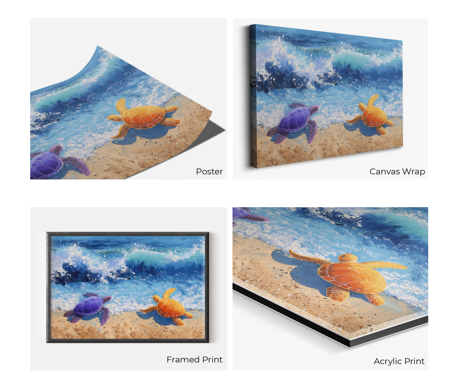 – Acrylic Prints: Modern, frameless look, vibrant colors, built-in UV inhibitors, high-resolution archival paper and inks, and hand-polished, crystal-clear edges for a sophisticated touch.