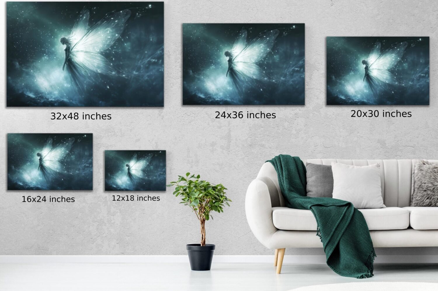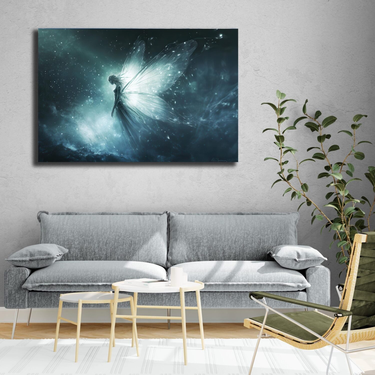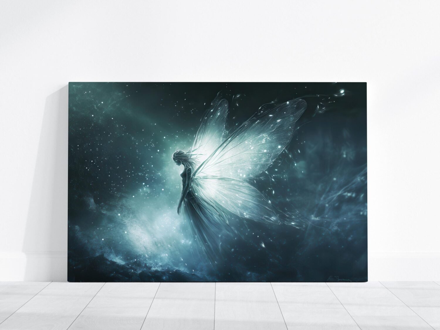 Fairy Painting, Enchanted Magical Fairy Tale Print, Mystical Creature Colorful Wings, Fantasy Picture Artwork, Vibrant Mythical Canvas