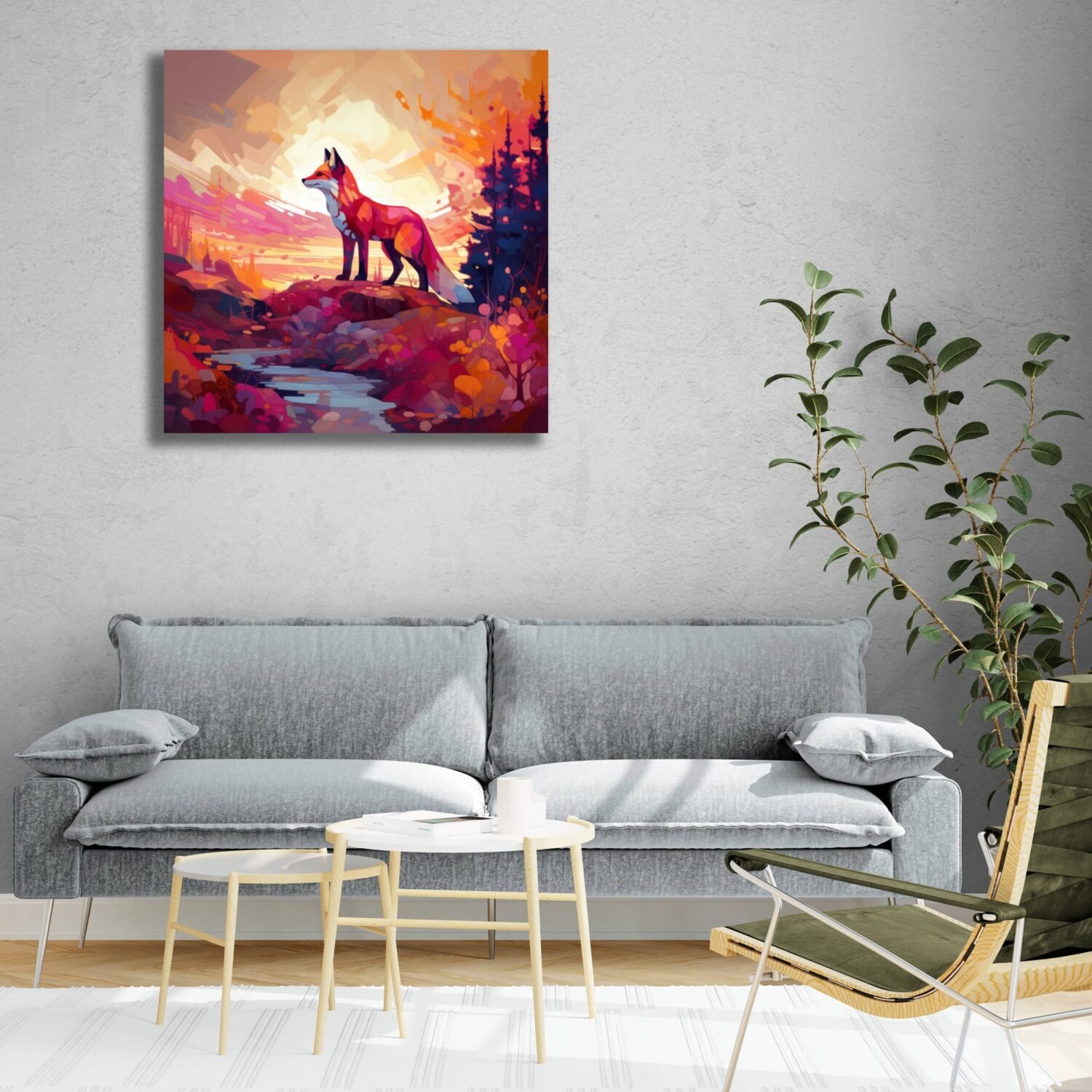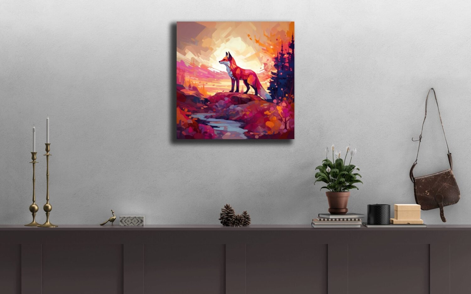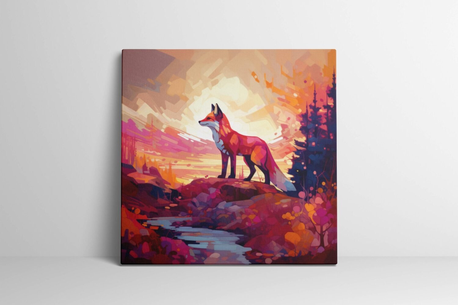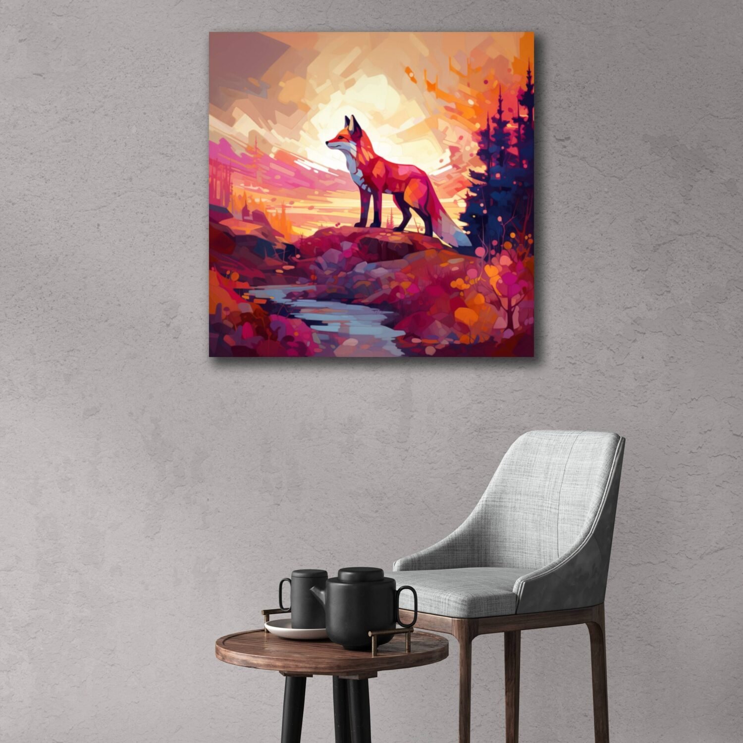 Immerse yourself in the mystique of the wilderness with this beautiful painting featuring a majestic fox in its natural forest habitat. Transport your space to the tranquility of the woods with this enchanting artwork!