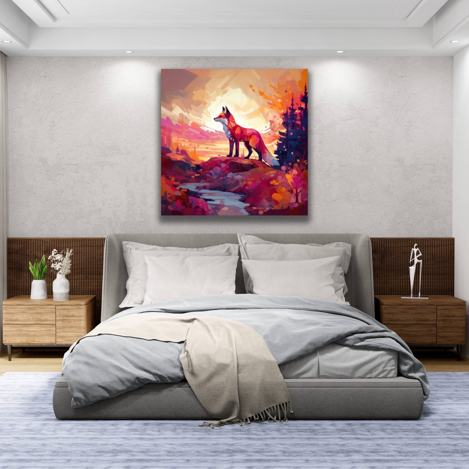 Fox Painting, Animal Wall Art, Geometric Cyber Fox Print, Red Fox Canvas, Wildlife Photography, Fox in Forest Nature Landscape Portrait
