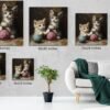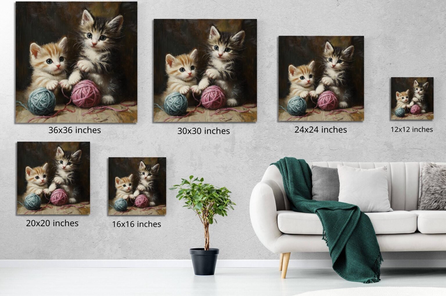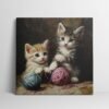 Adorable kittens playing with colorful yarn, perfect for adding a playful touch to any space. These curious felines are full of energy, tumbling and chasing balls of soft yarn.