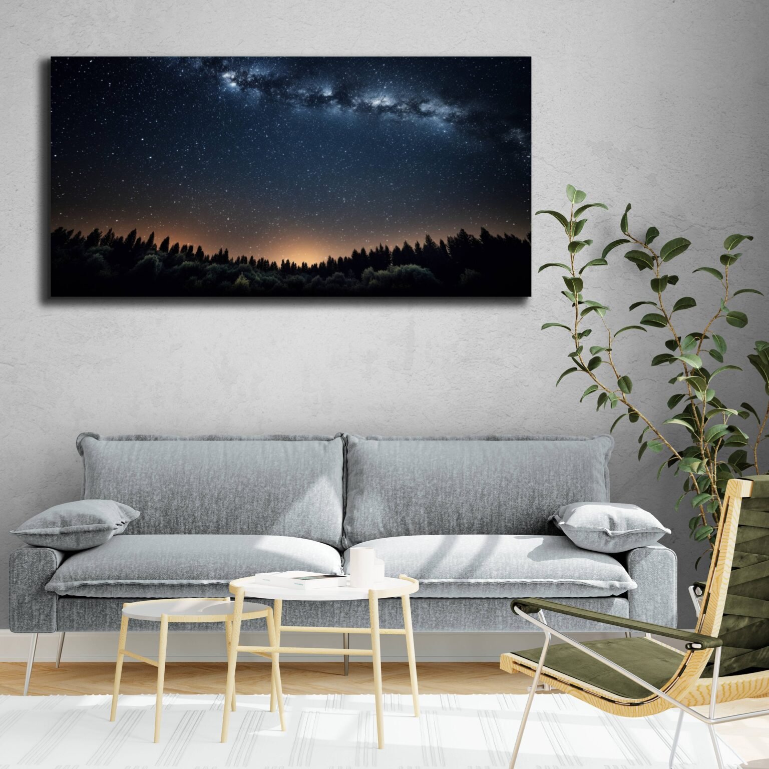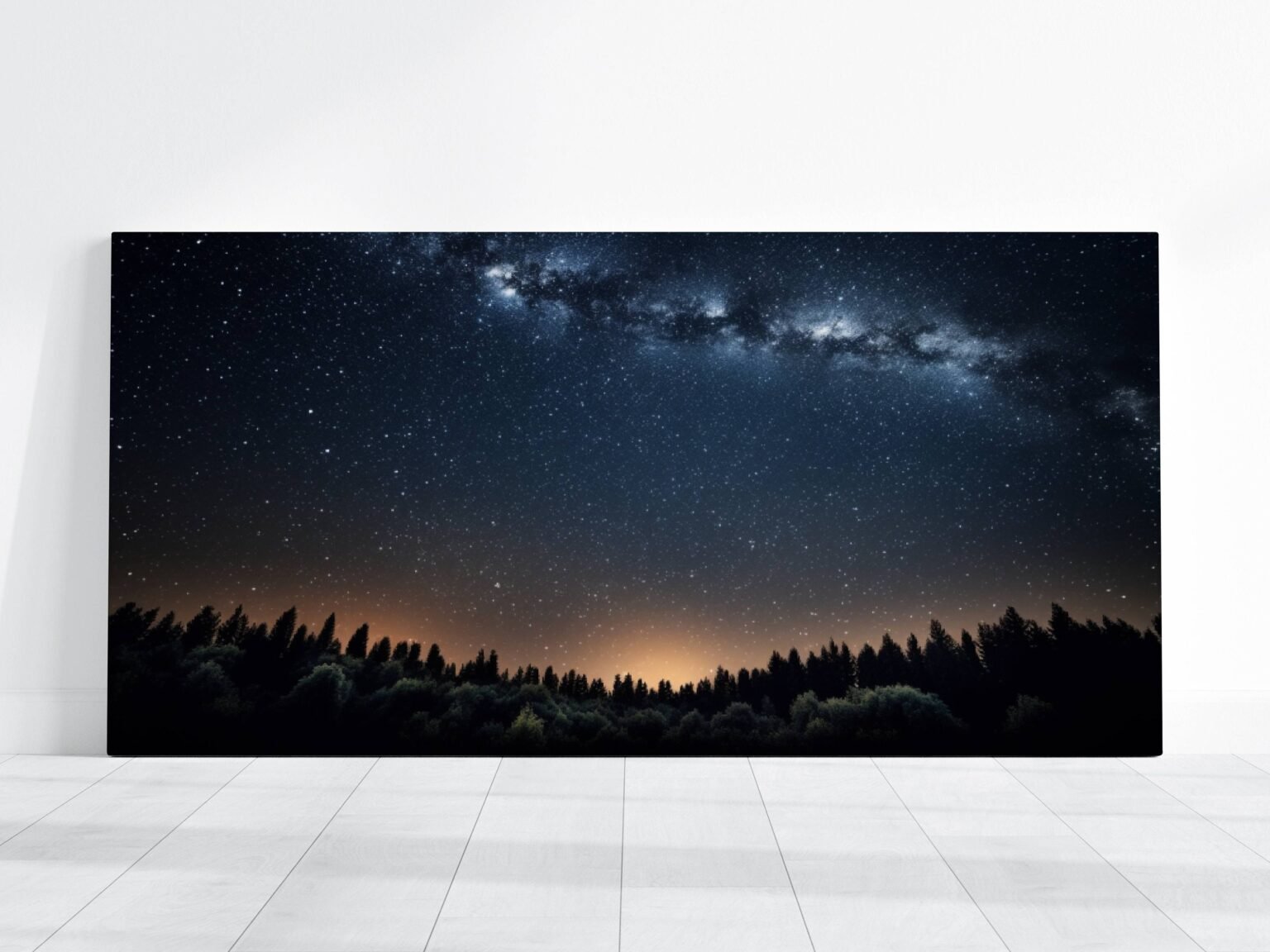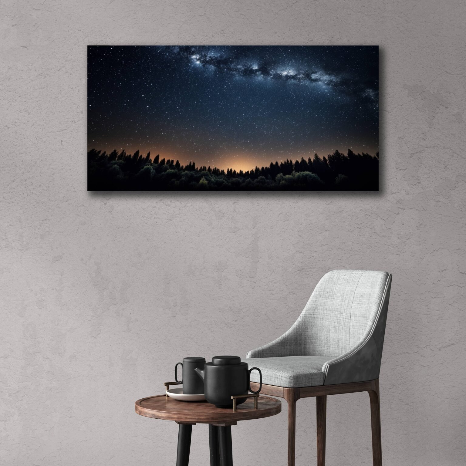 Starry Serenity: HD capture of the Milky Way gracing the night sky above a tranquil forest, a breathtaking celestial vista in nature's embrace.