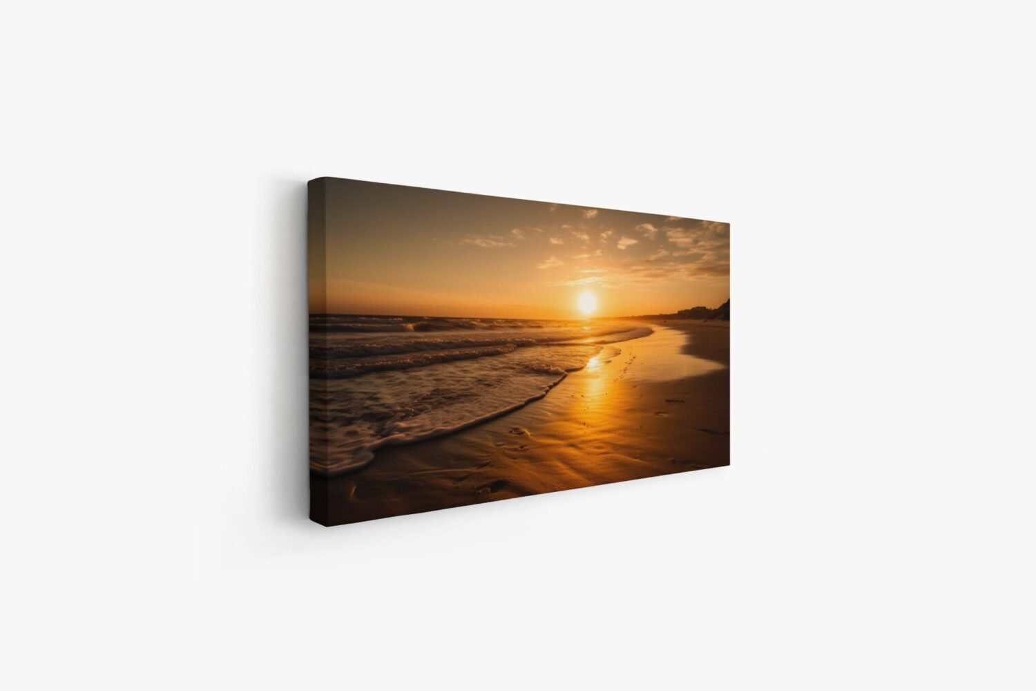 Breathtaking high-definition photo capturing the serene beauty of a vibrant sunset on a pristine beach. Witness the golden hues melting into the horizon as the tranquil waves gently kiss the shoreline. This stunning image brings the warmth and tranquility of a beach sunset directly to your eyes, immersing you in a moment of peaceful serenity.”