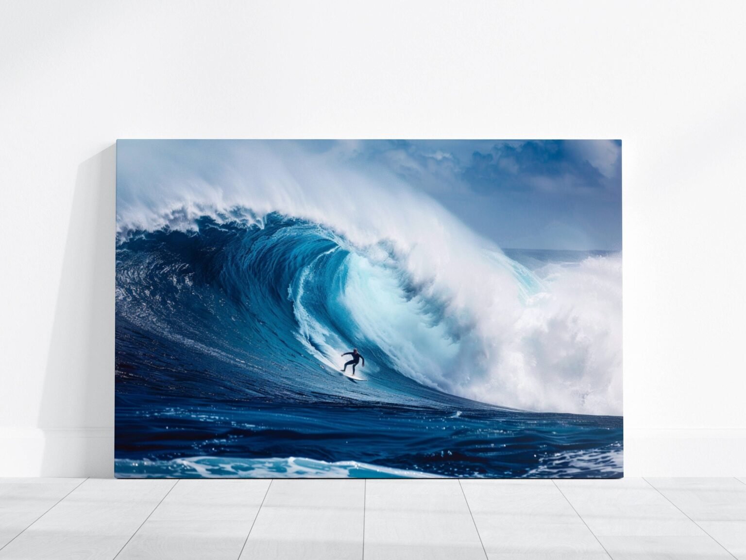 Capture the exhilarating beauty of Hawaii's waves with this stunning HD photo featuring a fearless surfer conquering a massive wave. Perfect for adding a touch of adventure and natural wonder to any space!